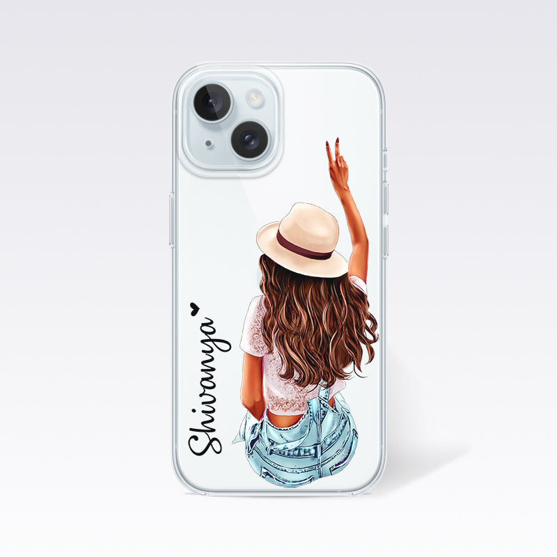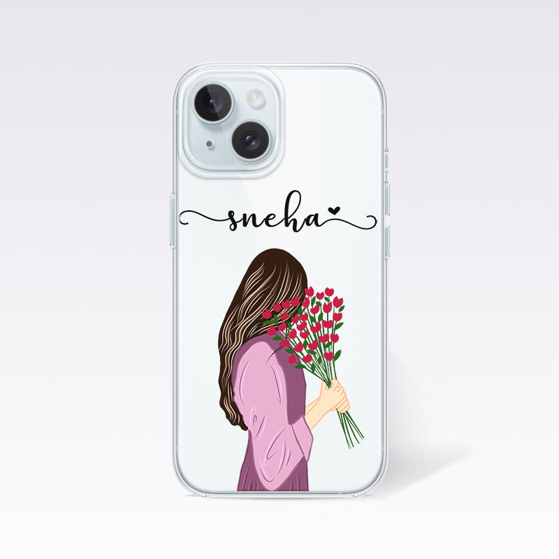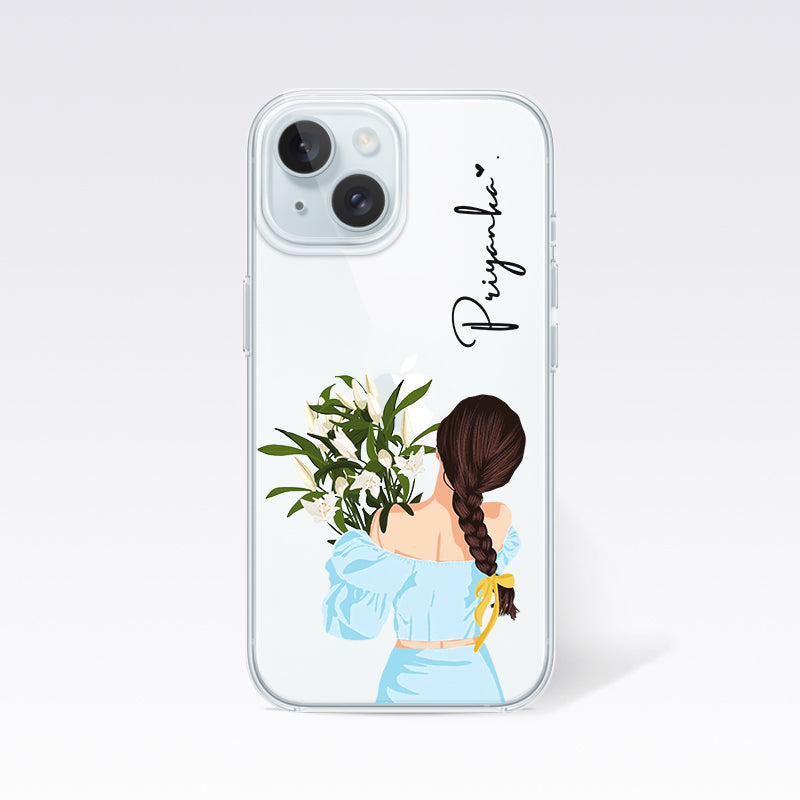 Cute Girl in Blue with Flowers Custom Name Clear Silicon Case